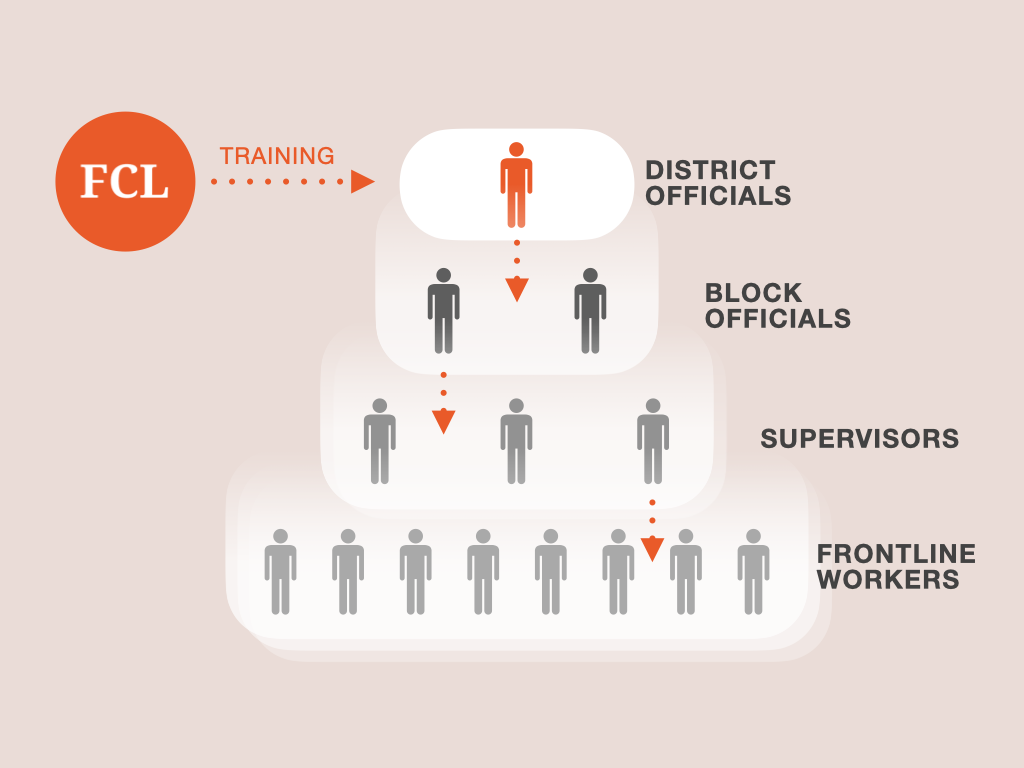 The sustainable solution lies in building capacities so that each person in the system can train, monitor and coach their direct reports long after the programs have ended. In doing so the entire organisation commits to learning through doing, and creates a cadre of high-quality resource persons within the department.